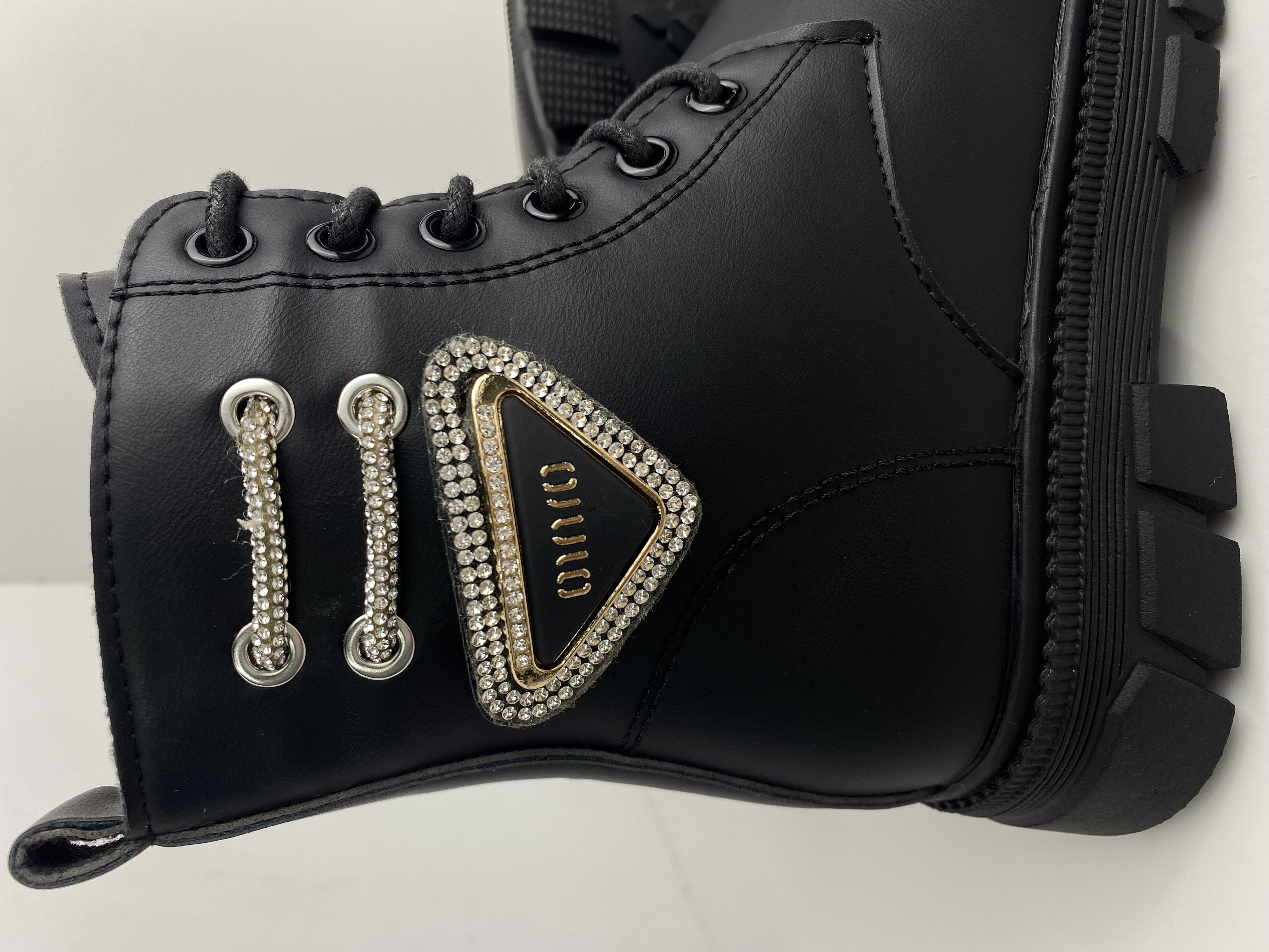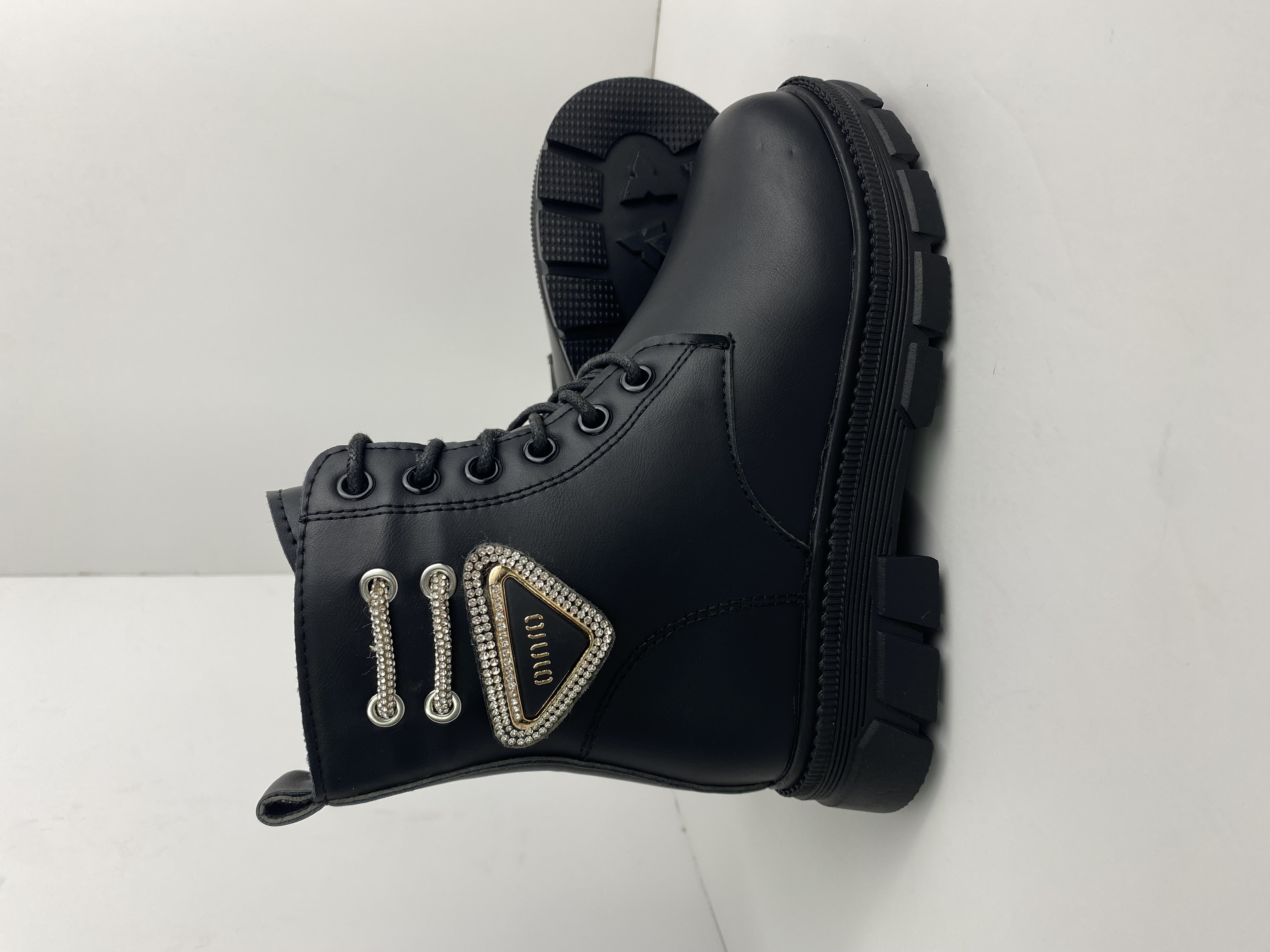 جزئیات طلایی و نگینی روی کناره بوت، ظاهری شبیه مدلهای برند لوکس داره و باعث میشه استایل دخترونه کاملاً خاص و متفاوت بشه.